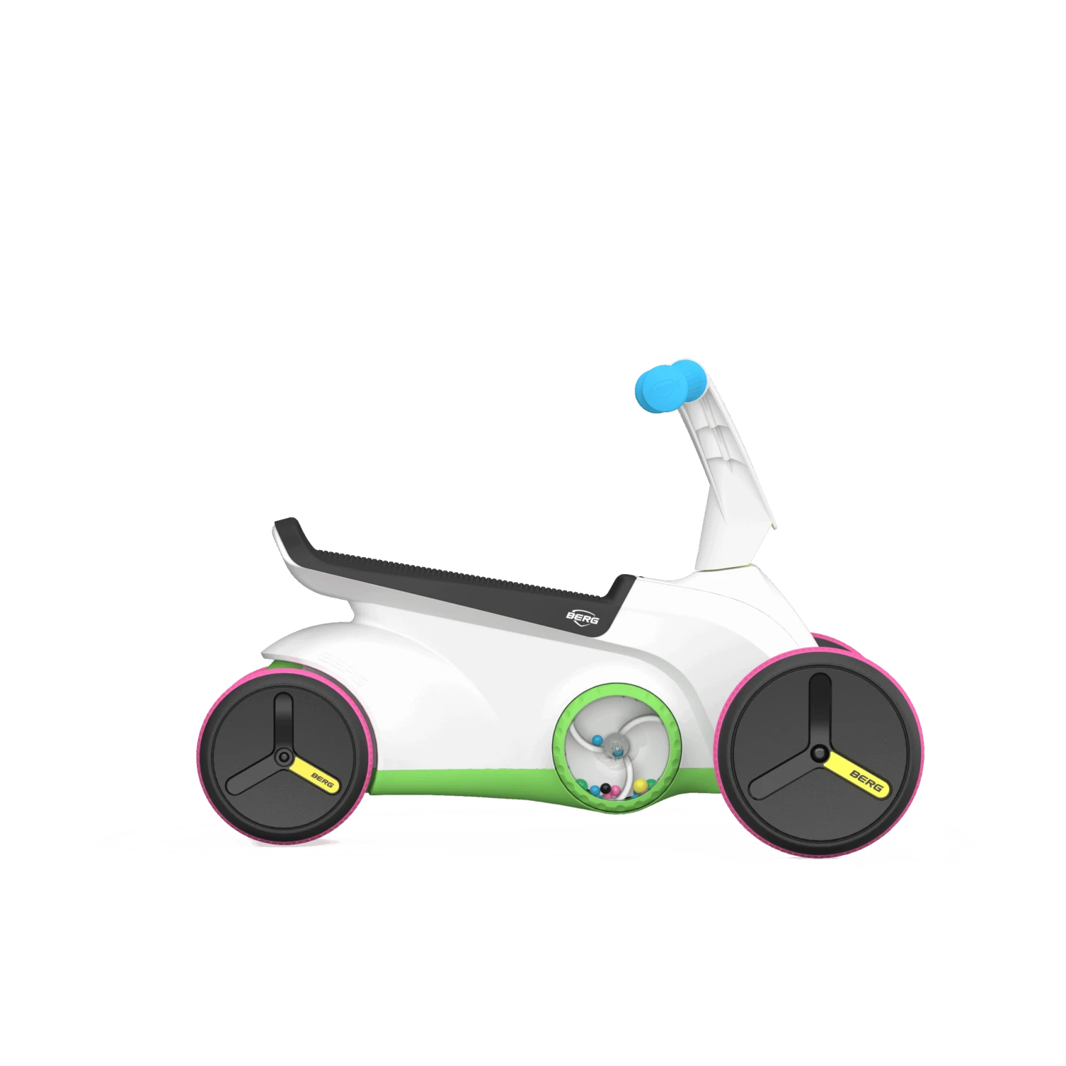 Speciaal voor de allerjongsten heeft BERG de GO loopauto ontwikkeld. De GO Twirl is een loopauto geschikt voor kinderen van 10-30 maanden. Op deze loopauto kunnen kinderen al heel jong beginnen met leren steppen. Het leuke spelletje aan beide zijkanten van de GO draagt bij aan de motoriek van je kleintje. Dankzij de 4 wielen is de loopauto extra stabiel en veilig. 4 stille fluisterbanden die niet lek kunnen raken, een direct drive systeem wat het rondrijden heel makkelijk maakt, een ergonomisch design en een stevige zadel. De BERG GO loopauto heeft het allemaal!