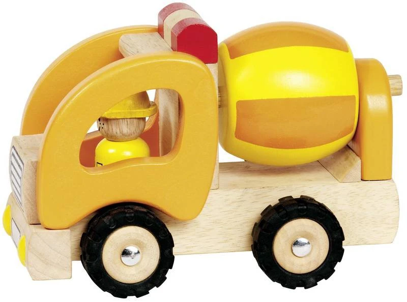 Stevige houten betonmixer met rubber banden. Daardoor rijdt de betonmixer stabiel en geruisloos. De ton kan echt draaien.