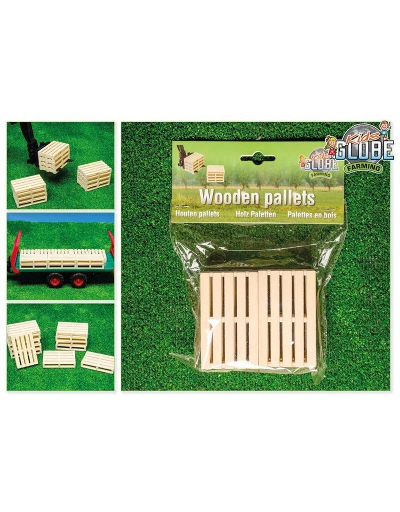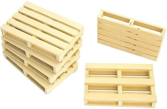 Zes houten europallets om te combineren met Bruder speelgoed. Schaal 1 : 16.