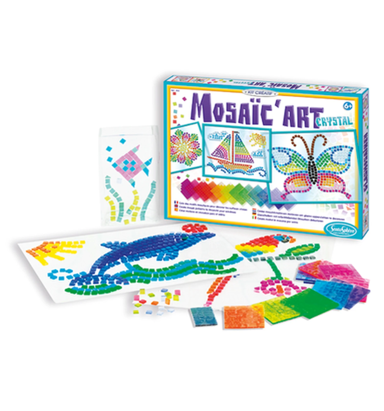 Met deze set is het gemakkelijk om de mooiste figuren te mozaïeken door middel van zelfklevende mozaïeksteentjes. Plak deze op vazen, ramen of tegels en verwijder ze gemakkelijk wanneer je een ander ontwerp wil maken. Geschikt vanaf 6 jaar.