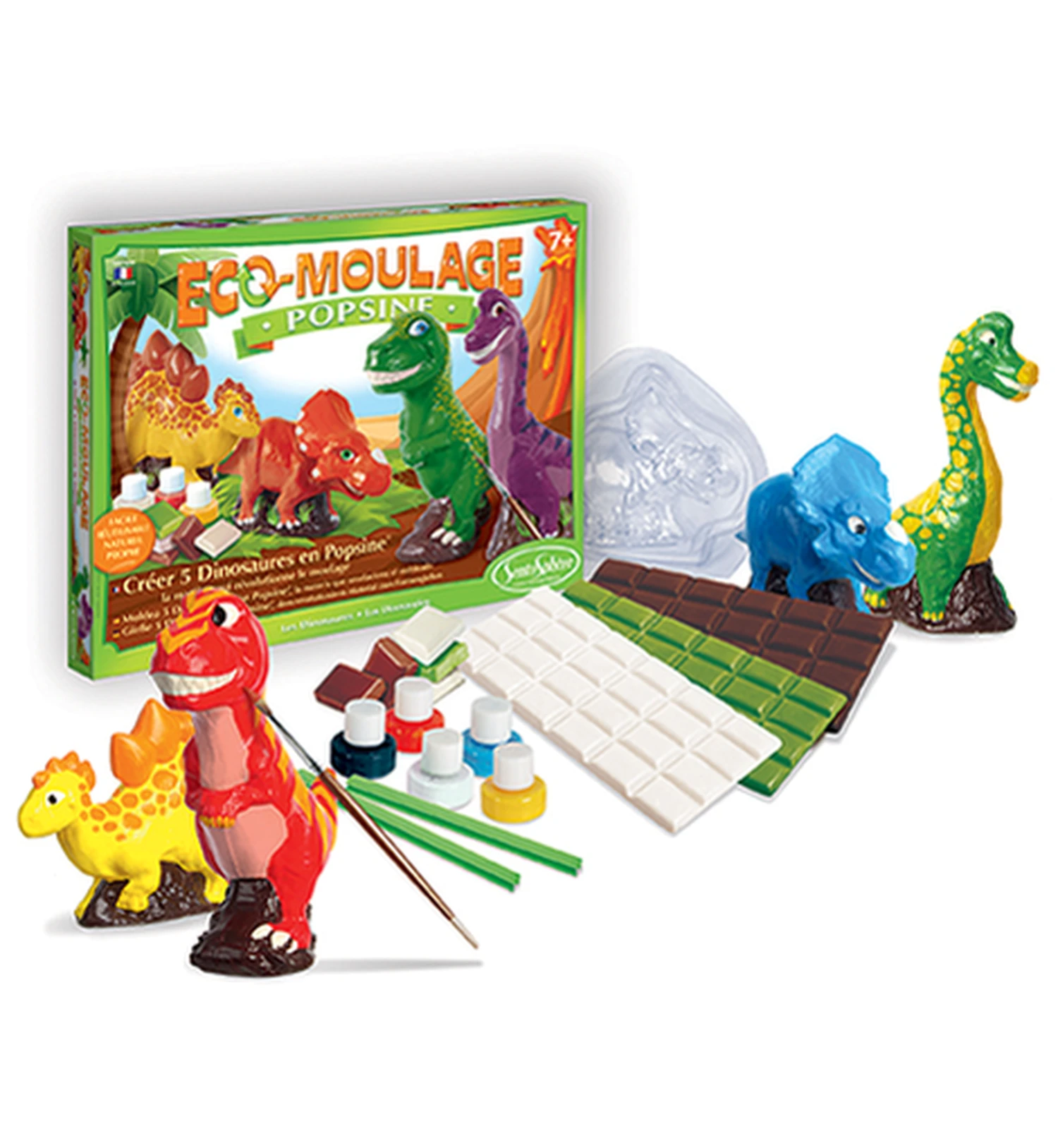 Complete materialenset om van popsine dinosauriers te gieten en te beschilderen.