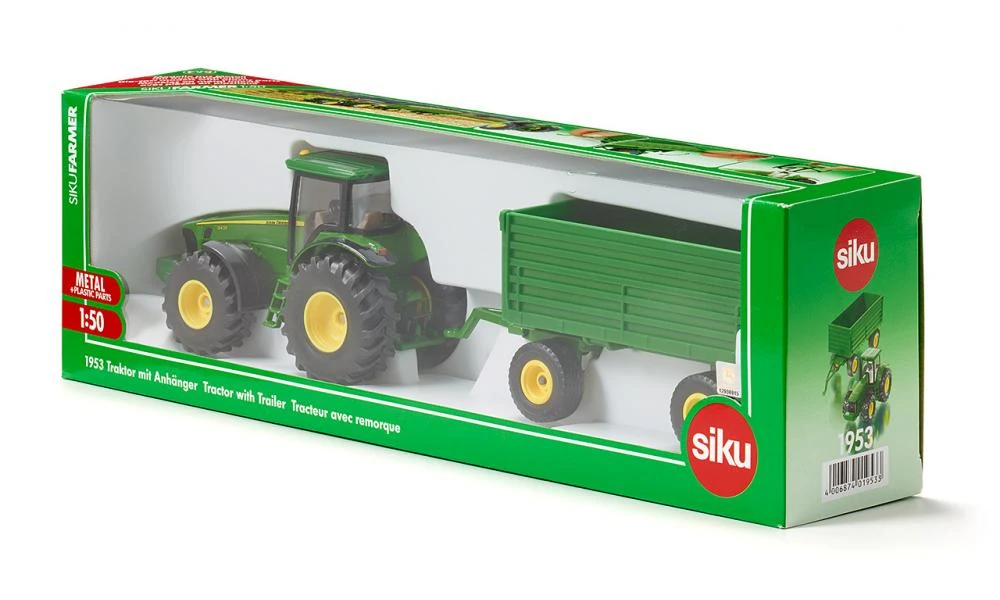 Siku 1953 Tractor John-Deere met 2 assige aanhangwagen