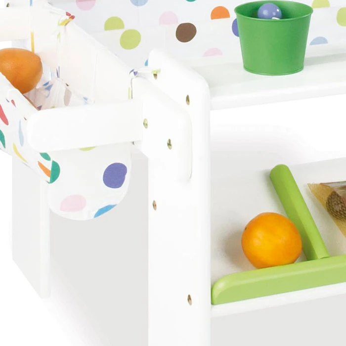 De meest uitgebreide winkel / marktkraam van het robuuste duitse merk Pinolino. De ombouw is gemaakt uit gelakt vurenhout, en de winkel is verder afgewerkt met 100% katoenen bekleding. De winkel wordt geleverd met 4 grote laden en is uiterst stabiel.